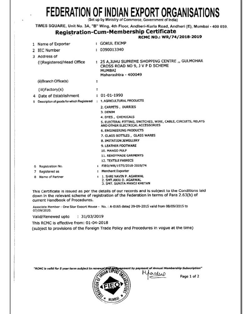 FIEO (Certificate of Federation of Indian Export Organisations)