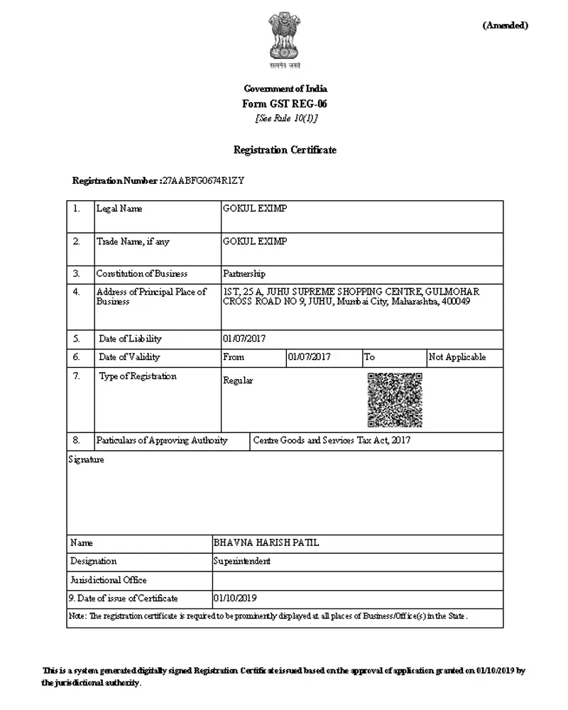 GST (Certificate of Goods and Service Tax)