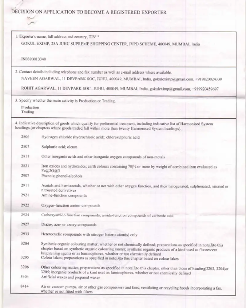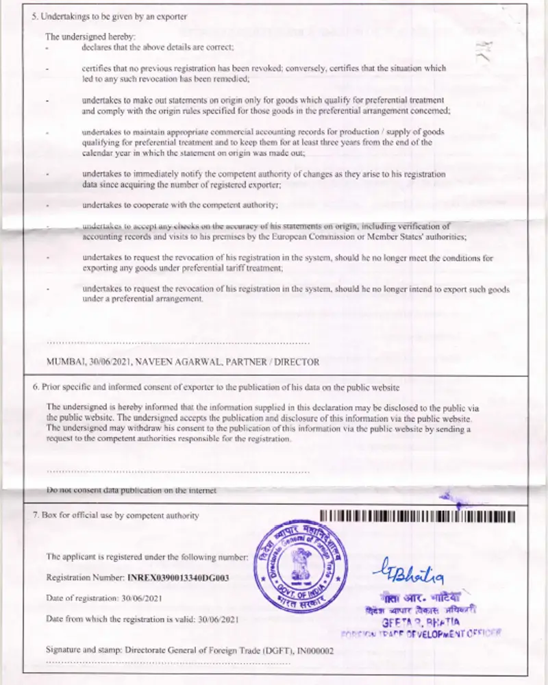 REX Page – 2 (Certificate Of Registered Exporters System)