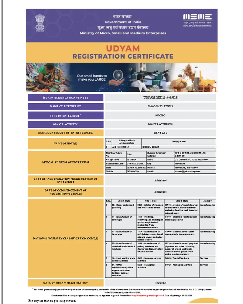 UDYAM (MSME/UDYAM Registration Certificate)